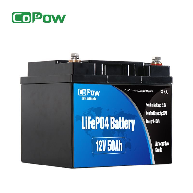 Batéria LiFePO4 má 100 % hĺbku vybitia a podporuje rýchle nabíjanie alebo nabíjanie pomocou solárneho panela. Úplné nabitie 12V100Ah olovenej-batérie trvá 10-20 hodín a beží 9 hodín pri záťaži 80W, kým 12V50Ah LiFePO4 batéria Úplné nabitie trvá len 1-1,5 hodiny a môže bežať 8 hodín.